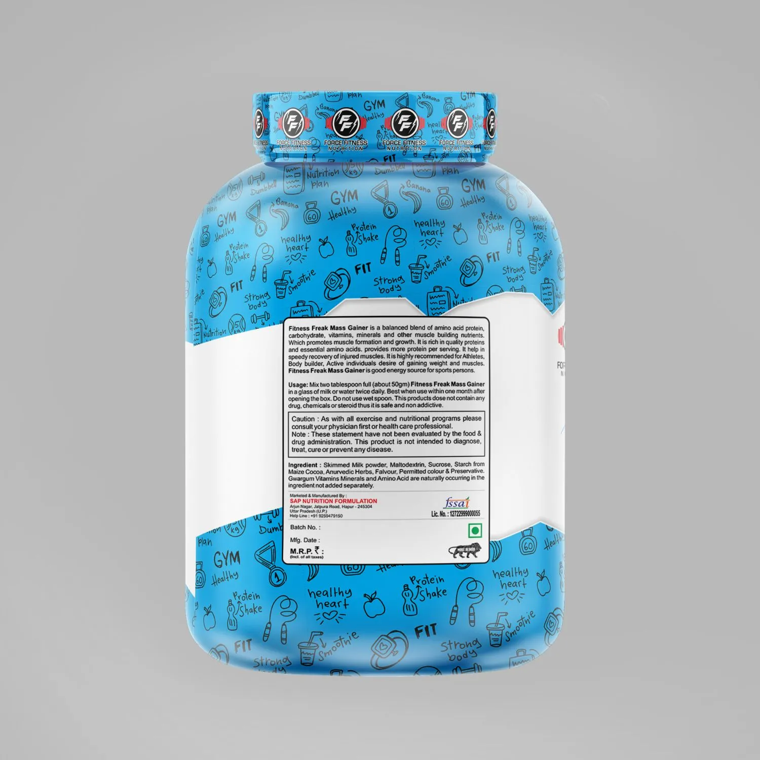 Fitness Freak Mass Gainer is a powerful high-calorie formula specially designed for individuals who struggle to gain weight and build muscle mass. This advanced mass gainer provides the perfect combination of high-quality protein, complex carbohydrates, and essential nutrients to support muscle growth, strength, and recovery. It is an ideal supplement for bodybuilders, athletes, and fitness enthusiasts who want to increase their daily calorie intake and achieve a bigger, stronger physique.